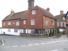 The Kings Arms is in the middle of Rotherfield, at the junction of the High Street and the road east to Mark Cross. There ia a car park and a beer garden. Dogs are allowed in the front bar (as it does not have a carpet).