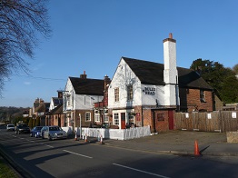 Large Pub in front of the village green that started as a coaching inn more than 400 years ago. It has been through several incarnations since then (including trendy winebar in the 80s/90s), but is now very much a thriving community pub & restaurant. Pub has a substantial garden - and dogs are allowed inside in the Games bar. Usually has 4 or 5 ales on tap.
