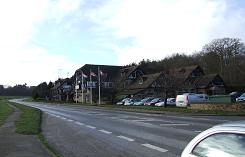 The Grasshopper is on the A25, at the bottom of Moorhouse hill west of Westerham. It is just inside Surrey. Legend has it that the wife of the lord of the manor of Tatsfield was opposed to the existence of a pub within the manor, so someone built The Grasshopper just outside the parish. Food is served throughout so dogs are not allowed inside at all. There are some tables at the front and also a terraced beer garden at the back, accessible from the left hand side of the building.